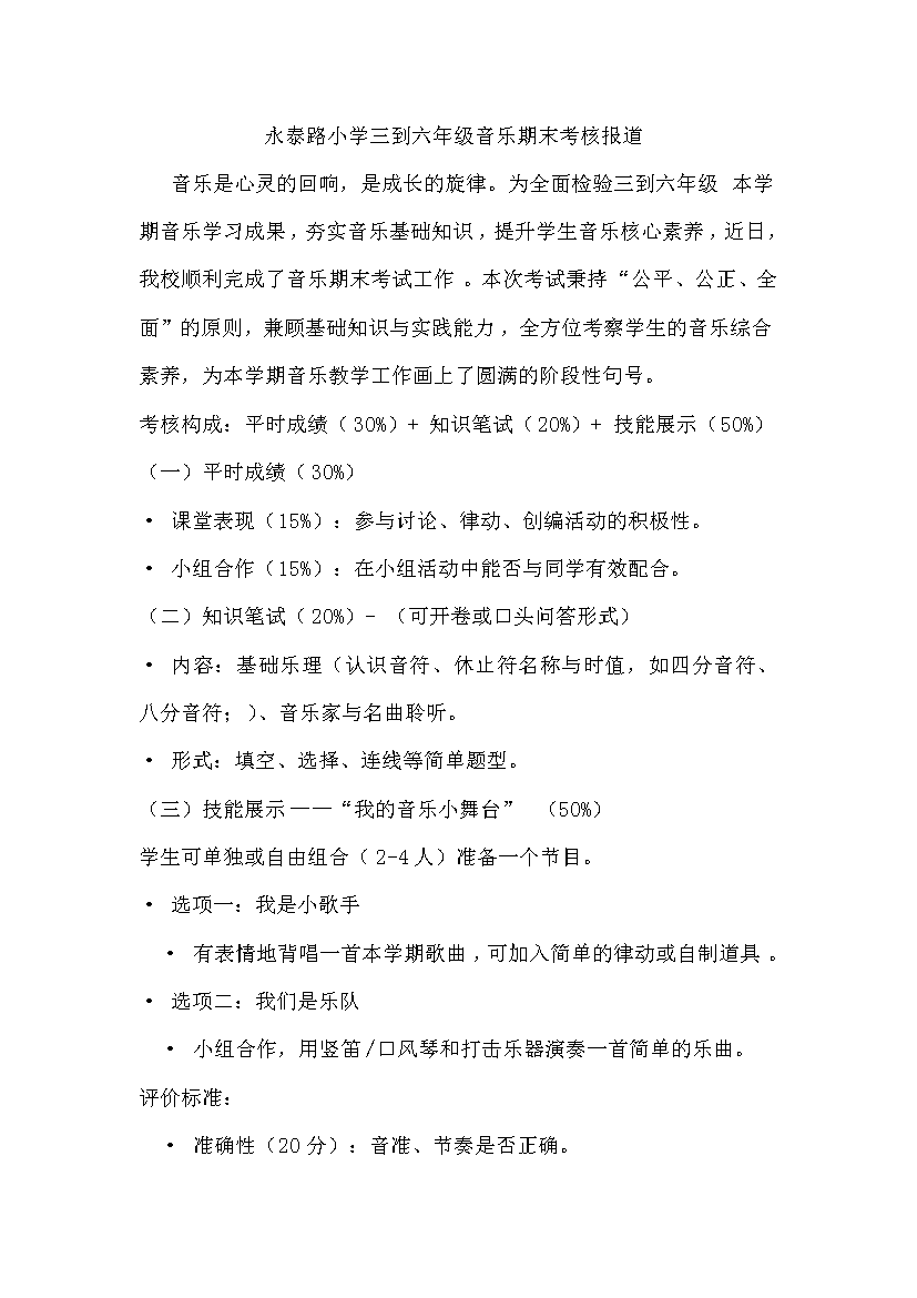 南京市永泰路小学2025-2026上学期三到六年级音乐期末考核报道